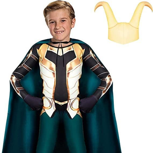 Superhero Costume for Kids Boys Party Jumpsuit Halloween Cosplay with Cape Helmet 5-12 Years