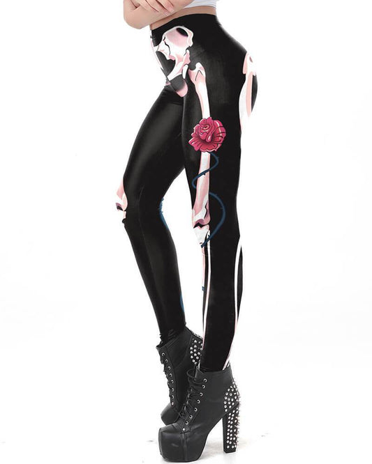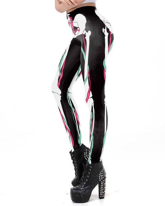 Skeleton Leg Printed Black Halloween Leggings