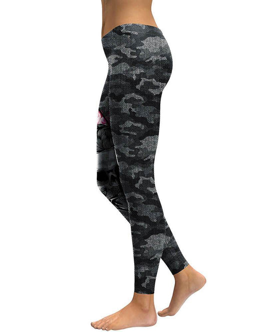 Skull Camo Printed Black Grey Halloween Leggings