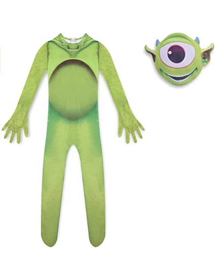 Halloween Monsters Mike Costumes Jumpsuit Green Bodysuit with Cape for Cosplay Party