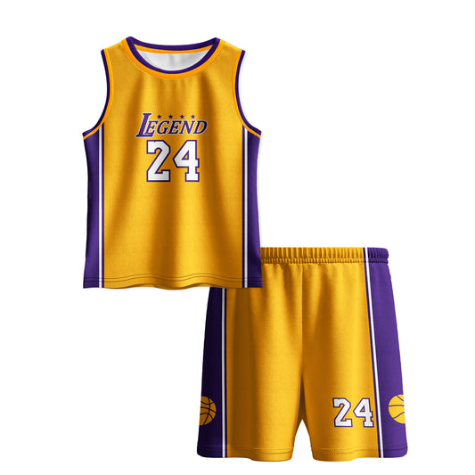 Kids Basketball Jerseys #24 Classic Mesh Tank Top Shorts for Boys Girls Sleeveless Athletic Training Uniforms