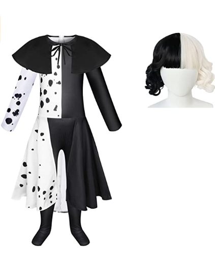 Cruella Costume for Cosplay Jumpsuit Dress with Wig